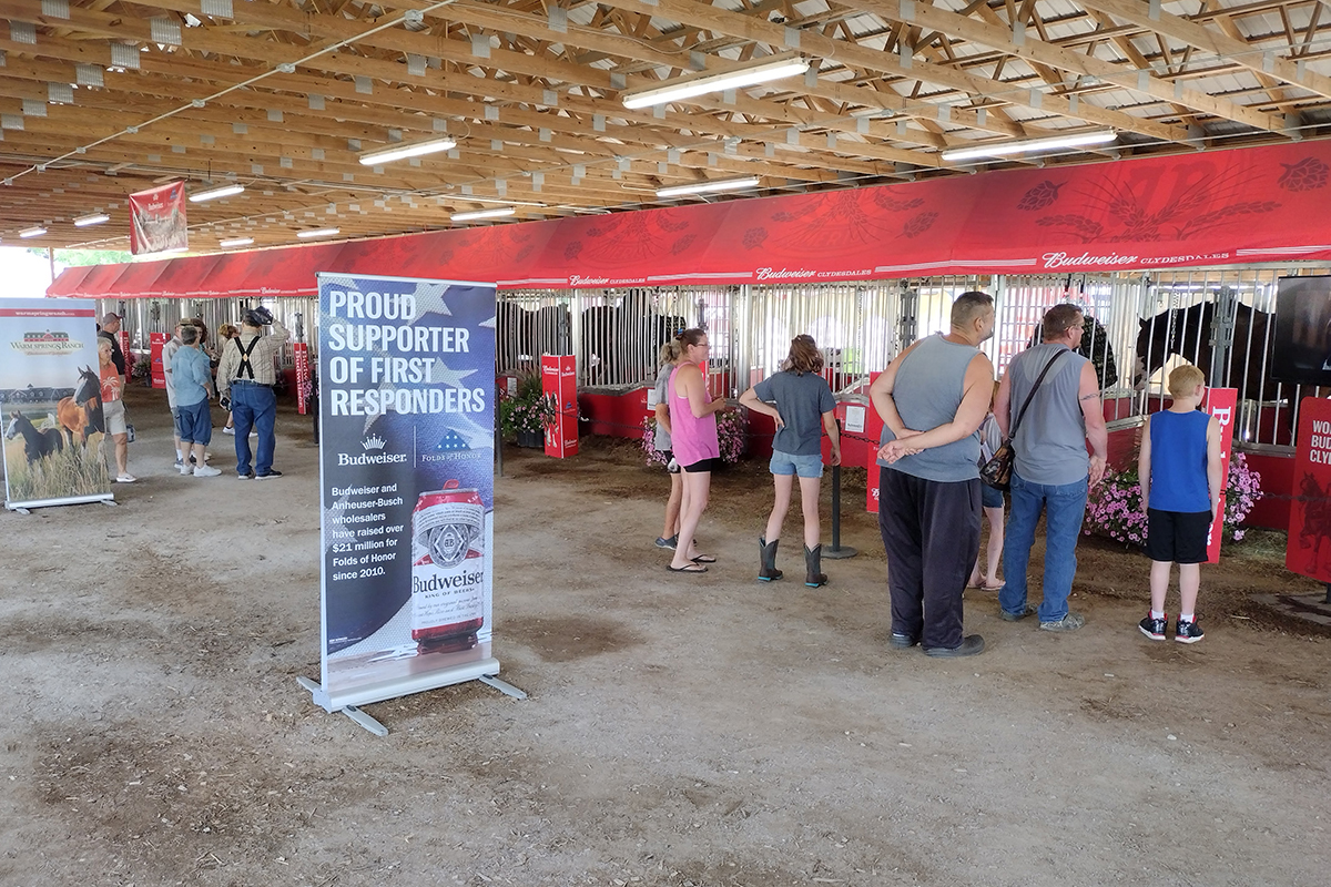 The beloved Budweiser Clydesdales have a very busy schedule making appearances at various events throughout the country this year as part of a celebration of their partnership Folds of Honor. One of the stops on their national tour included a multi-day stay, July 17 – 23, at the Muskingum County Fairgrounds.