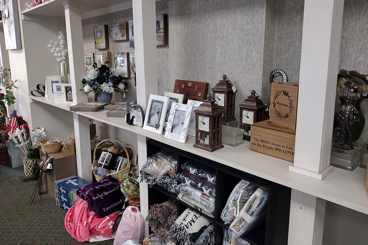 “The brick building was always part of the property but it was always used as storage so we opened it up and turned it into showroom space. It’s allowed us to expand on the sympathy gifts. – We have sympathy frames, candles, angels, music boxes, shadow boxes, blankets, and chimes. We sell fresh-cut flowers all day, every day,” said Jessica.