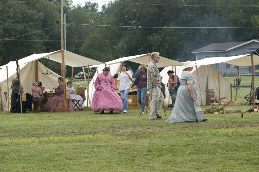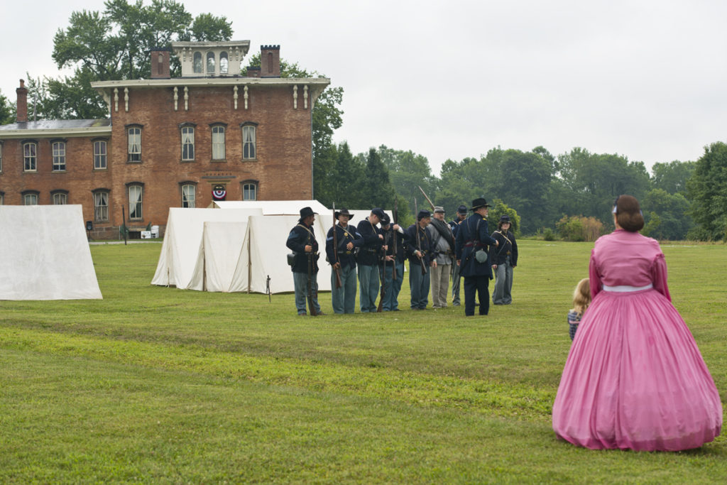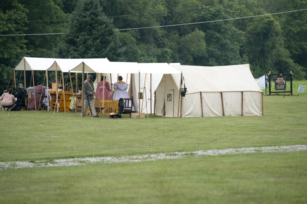 During the event, about a dozen traditional white tents covered the grounds, recreating the camp of Company K, a company from the Ohio 41st Regiment. Set up next to the troops camp was a recreation of a refugee camp for people who had unfortunately lost their residencies in the Civil War. Scattered throughout the grounds were fun activities for guests to enjoy, including kid’s games of the period and a tour of the mansion. A flag raising was held at 10 A.M. followed by High Tea at 11 A.M.