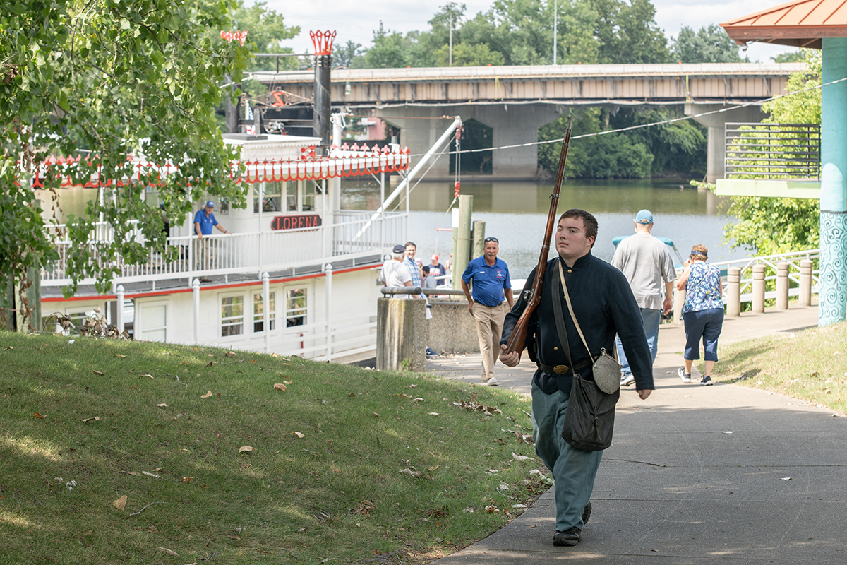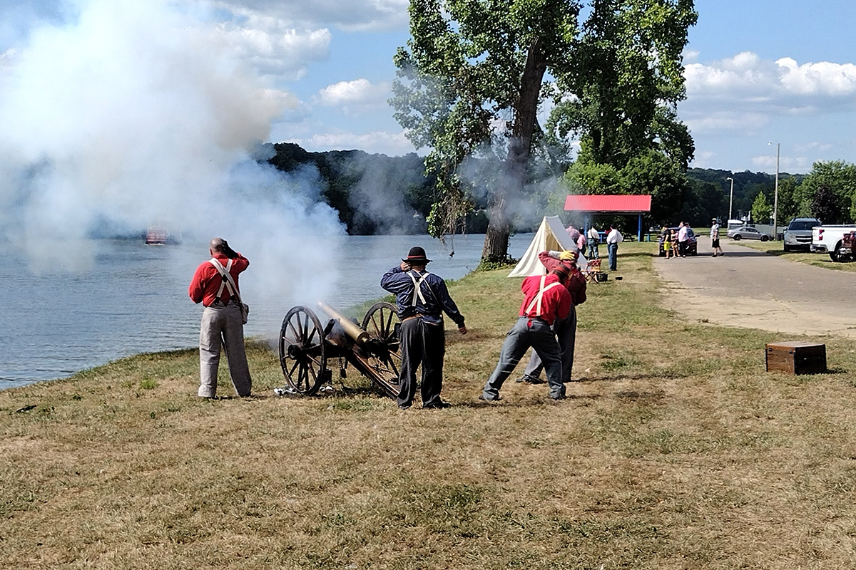 A Civil War Reenactment and Encampment returned to the banks of the Muskingum River on July 19 and 20th. Camps were set up at Riverside Park with reenactors dressed for the period and carrying muskets and arming cannons.