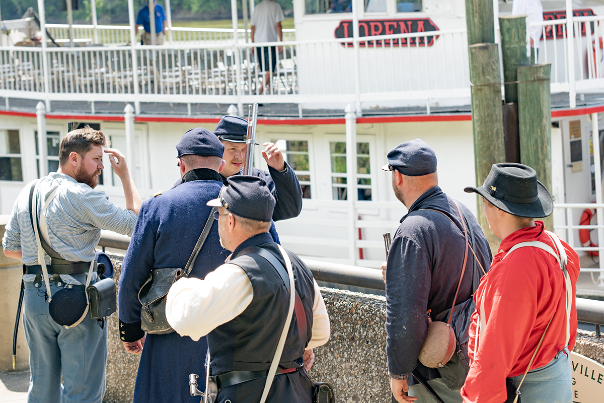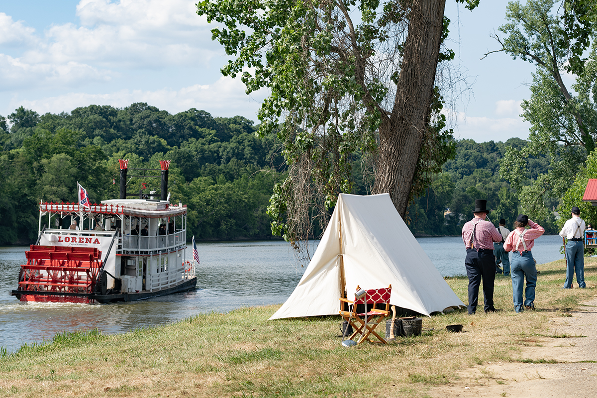The most unique part of this annual event is the utilization of the Lorena Sternwheeler. Ticket holders could board the Sternwheeler from Zane’s Landing Park at set times and get right in the action with “soldiers” taking “shots” at their enemies along the river’s edge. Cannons and firearms returned “fire” and the sounds of “battle” could be heard for miles. This opportunity provided a thrilling experience on the Sternwheeler which contrasts the normally tranquil ride on the Muskingum.