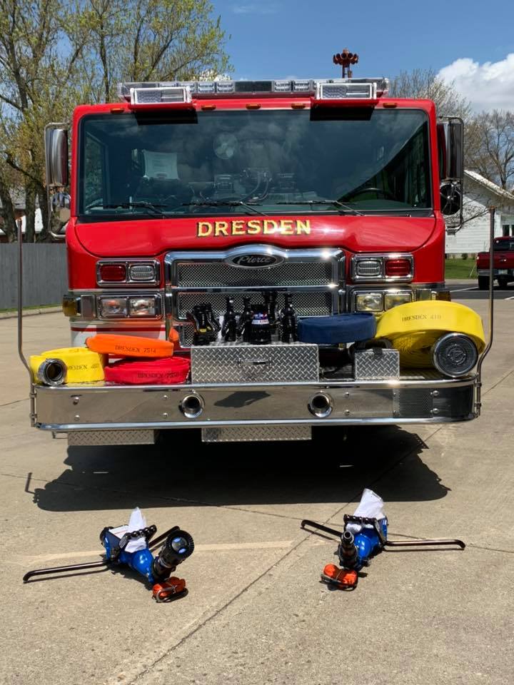 Last fall Ohio First Responders Grants, LLC announced that the Frazeysburg and Dresden Fire Departments would be receiving FEMA Assistance to Firefighters Grants. A Grant in the amount of $96,950 was awarded to the Dresden Volunteer Fire Department. At that time they planned to upgrade some of their hose and nozzles which has been in service since 1980. Earlier this Spring that equipment arrived.