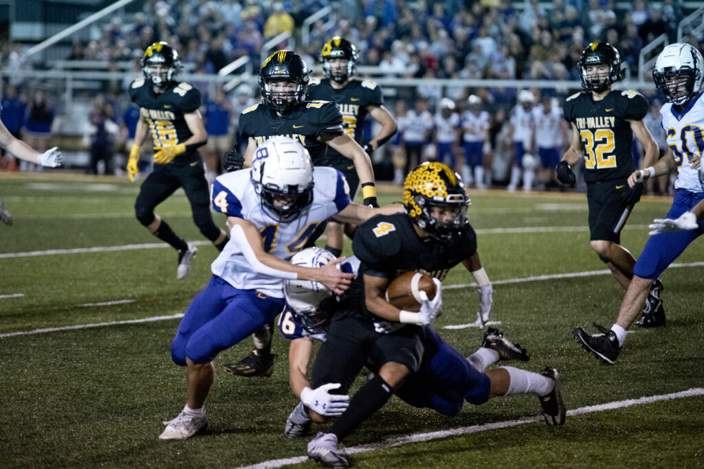 But the Scotties held Marshall in check most of the contest as he ran for 101 yards on 15 carries. However, an inconsistent Tri-Valley offense couldn’t crack the Bulldogs defense, as a late fourth quarter 10-yard Drake Durst rushing score was the only points the home team managed in the loss, as a Carter Dinan point-after-touchdown with 1:36 remaining in the contest was the last tally for the Dawgs on the 2022 season.