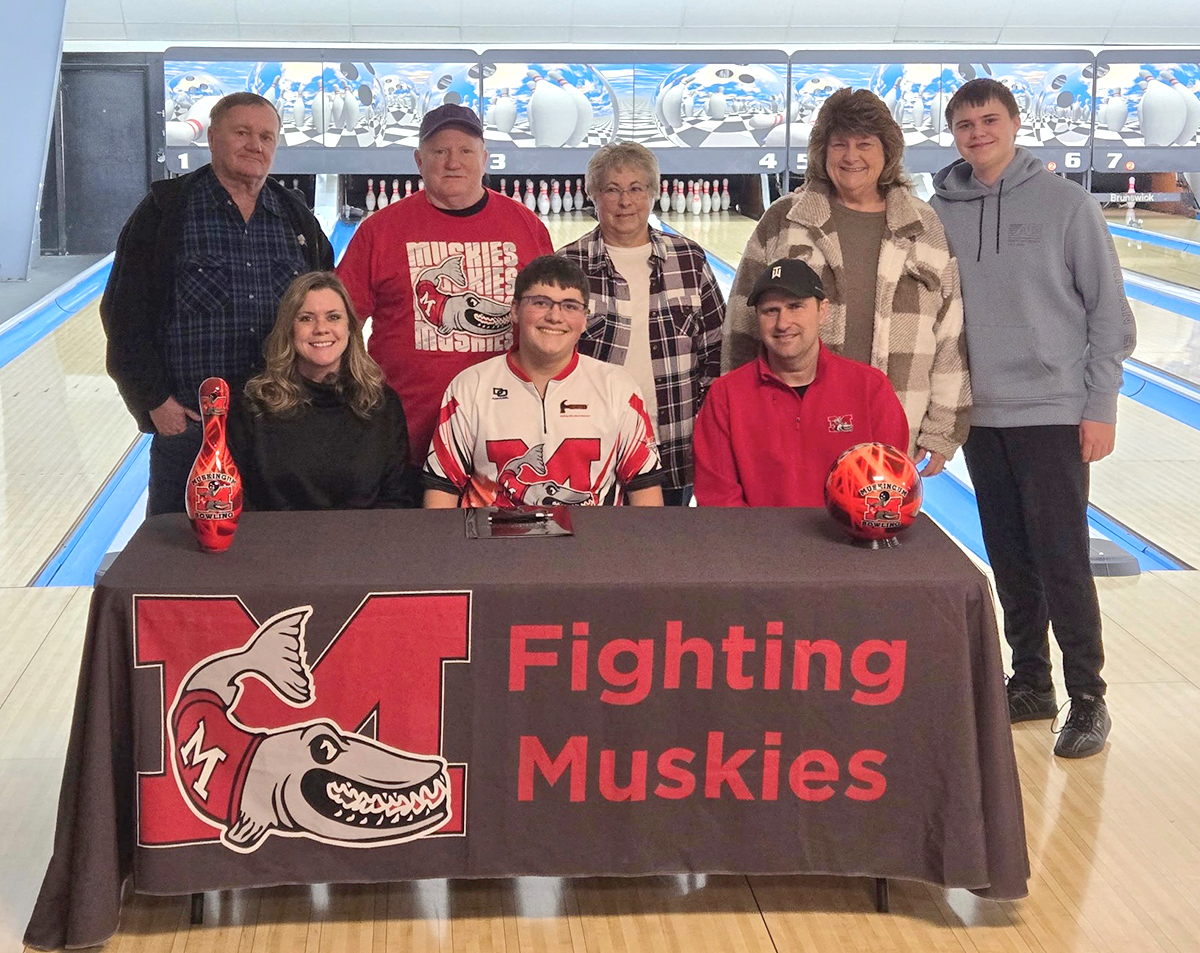 On Wednesday, February 5, Caiden Hogue (middle front) signed his letter of intent to bowl with Muskingum University.