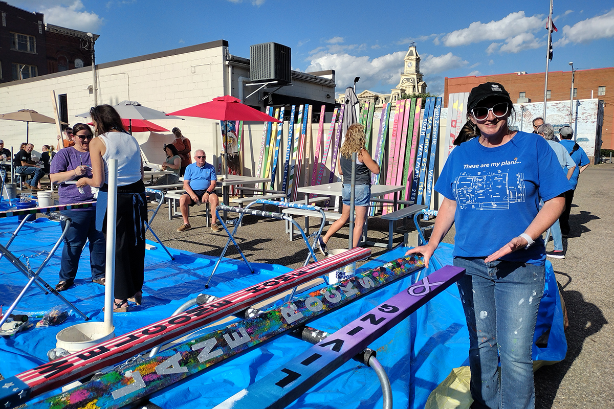 Local artist Allison Weeks painted two murals across five studs. The front side featured an American flag and a bald eagle. On the back was a painting of the outside of one of the Habitat homes. She was also on-site to help any of the sponsors that needed help.